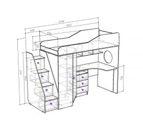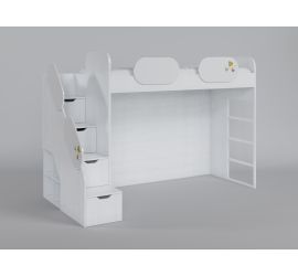 В таких кроватях спальное место располагается на втором ярусе. А вот снизу может располагаться место для творчества, рабочее место, игровая зона, шкаф, комод или полки. Для того, чтобы залезть на кровать, ребенку необходимо будет взобраться по специальной лестнице. Детская кровать-чердак полностью безопасна для малыша. Это объясняется ее устойчивостью, наличием бортика безопасности и его высотой, надежностью крепежа, удобной лестницей и высотой пространства между двумя ярусами.