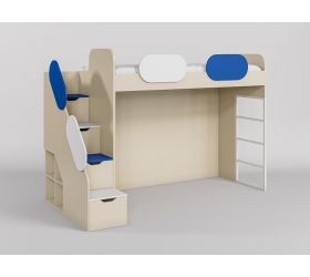 [name] => Кровать второй ярус с лестницей Скай (Синий/Белый/корпус Клен)