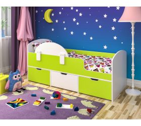 [name] => Кровать Малыш-мини с бортиком Белое дерево/Лайм