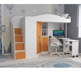 [name] => Кровать-чердак Кадет-1 с универсальной лестницей Дуб молочный/Оранжевый