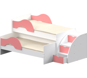 [name] => Кровать детская Матрешка выкатная с лестницей Белый/Розовый
